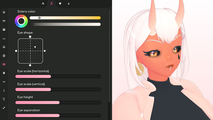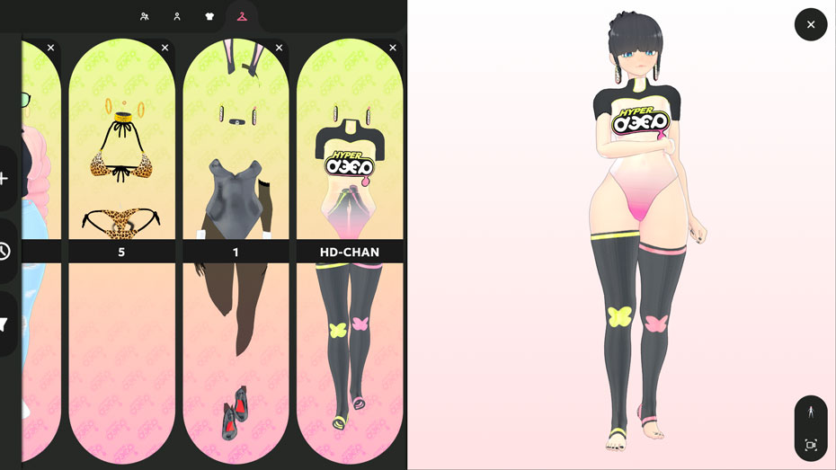 Hyperdeep comes with a comprehensive character designer, allowing you to customize HD-chan's appearance and outfits to match your mood.
